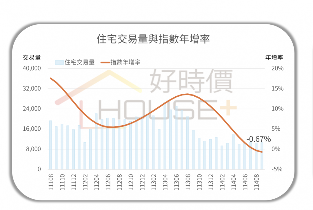 台中市住宅價格指數年漲幅已連續4個月為負數,且台南市及高雄市年增率亦連續3個月為負值。