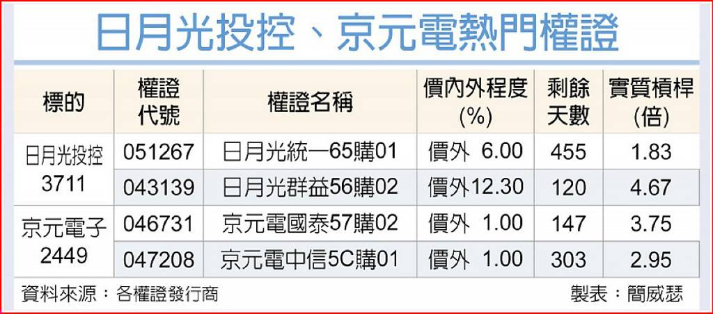 日月光投控、京元電熱門權證
