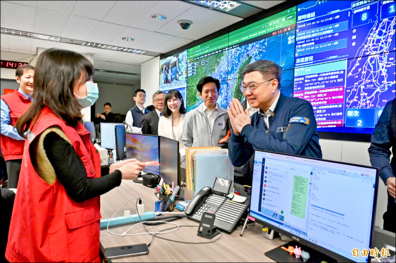 行政院長卓榮泰昨前往消防署救災救護指揮中心,慰勉春節留守值勤人員。(記者叢昌瑾攝)